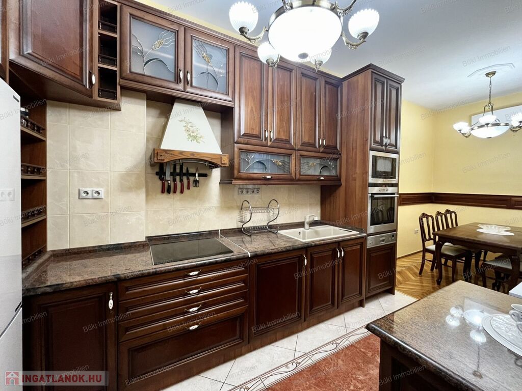 Kiadó Miskolcon, a Soltész Nagy Kálmán utcában egy igazán különleges, nagypolgári hangulatú, teljesen felújított, kifinomult és igényesen berendezett lakás, a liftes társasház harmadik emeletén. Már a konyhába lépve feltűnik a klasszikus elegancia és a minőségi kivitelezés: egyedi, fa frontos konyhabútor, beépített gépek, kényelmes étkezőrész és tágas munkafelületek fogadják a bérlőt. A nappali nagy belmagasságával, hatalmas ablakaival és stílusos bútorzatával valódi nagypolgári atmoszférát teremt, miközben modern és otthonos.
