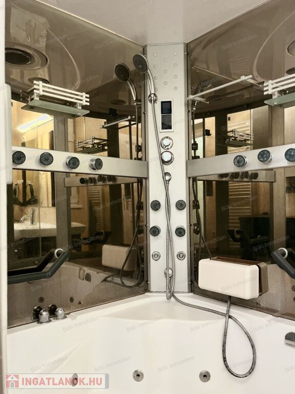A 91 m²-es lakás két tágas szobából áll, déli fekvésű, így egész nap világos, barátságos tereket kínál. A fürdőszoba különlegessége a jacuzzis, többfunkciós zuhanykabin–kád kombináció, amely a kikapcsolódást és a praktikumot is biztosítja; a helyiség tágas, rendezett és mosógéppel felszerelt.