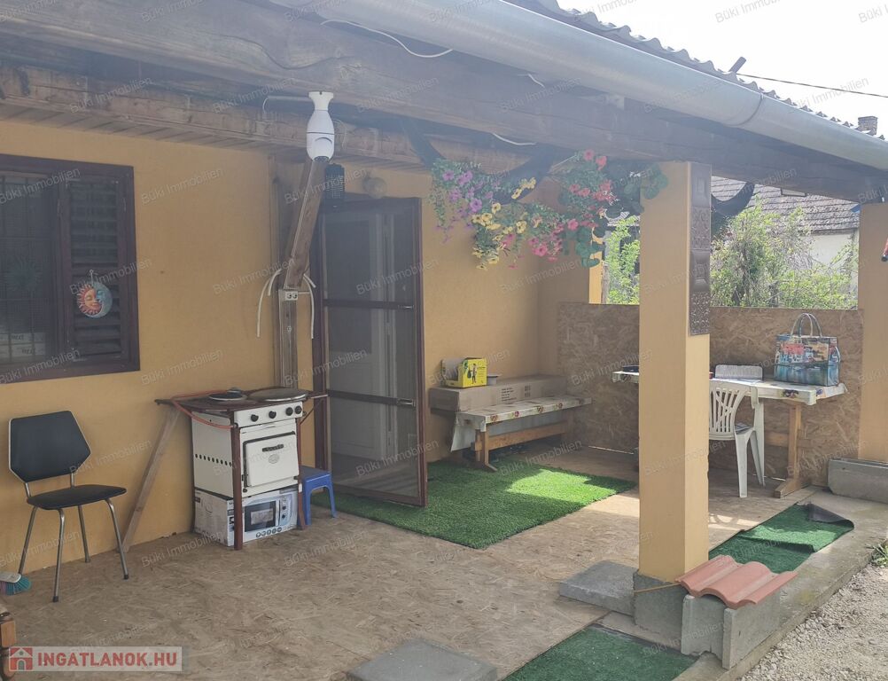 A ház egyik legnagyobb értéke a fedett terasz, ahol reggel egy kávé mellett, este pedig egy pohár borral élvezheti a csendet és a természet közelségét. Emellett egy külön kialakított szabadtéri terasz is rendelkezésre áll, amely tökéletes helyszíne lehet baráti összejöveteleknek, sütögetésnek vagy egyszerű pihenésnek.