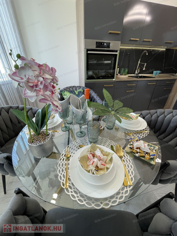 Itt van minden, ami csak egy igényes embernek kellhet a mindennapokhoz. Belsőépítész által tervezve, megalkotva, a legapróbb részletekre is ügyelve. Színvilágával elkápráztat, miközben az erkélyől a várost lehet csodálni, több szögből is. A bútorok egyedien lettek összeválogatva, a hideg és meleg színárnyalatokkal játszva, egy valódi alkotás. Ide már csak egy kulcsot, kistáskát kell hozni, és kezdőthet is egy új életszínvonal. Bárki, akit ide áthív az ember kávézni, borkóstolóra, vagy Netflixezni, biztosan elismerőleg fog szólni. A hatalmas erkélyen tavasztól mehet a teázás croissanttal, kis narancsdzsemmel és egy kis friss grapefruittal. Az erkély sarkon van, így a szívonalas zavartalan esti elmélkedés, esetleg a következő Nobel-díjas találmány megalkotása teljesen lehetséges, csak is a madarak lesznek jelen, mint hangulatfokozó természetes nyugatók. Wc és fürdő külön, így ha nagyobb társaság jönne össze, a házigazda zavartalanul mosakodhat, ha esetlegesen foglalt a wc.