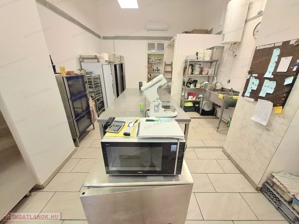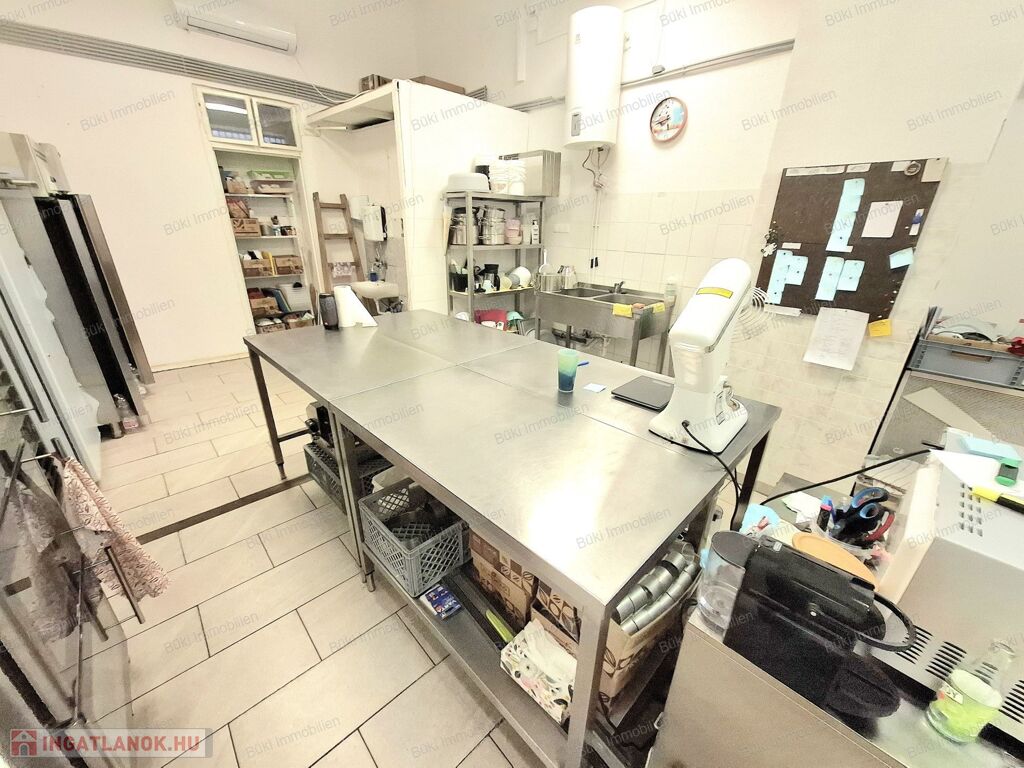 3×32A ipari áram, rozsdamentes bútorzat, háromrészes sütő, keverőgép, sokkoló, ipari fagyasztók és hűtők, tehát minden adott, hogy akár napi szinten nagy mennyiségű terméket lehessen előállítani. A klímás, tiszta és modern környezet pedig garantálja, hogy öröm legyen itt dolgozni, akár hosszú órákon át.