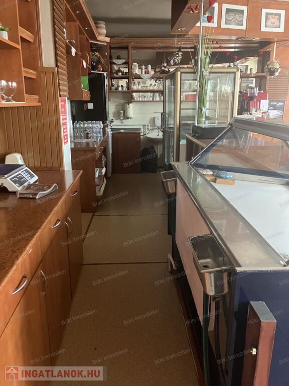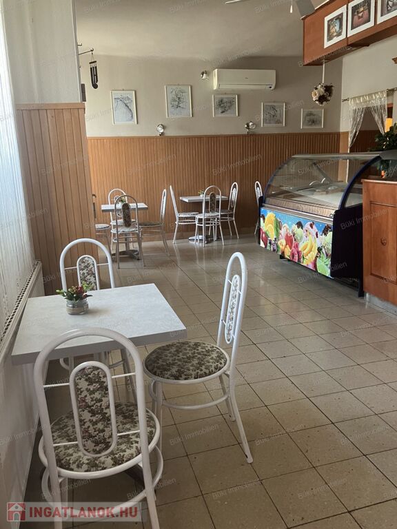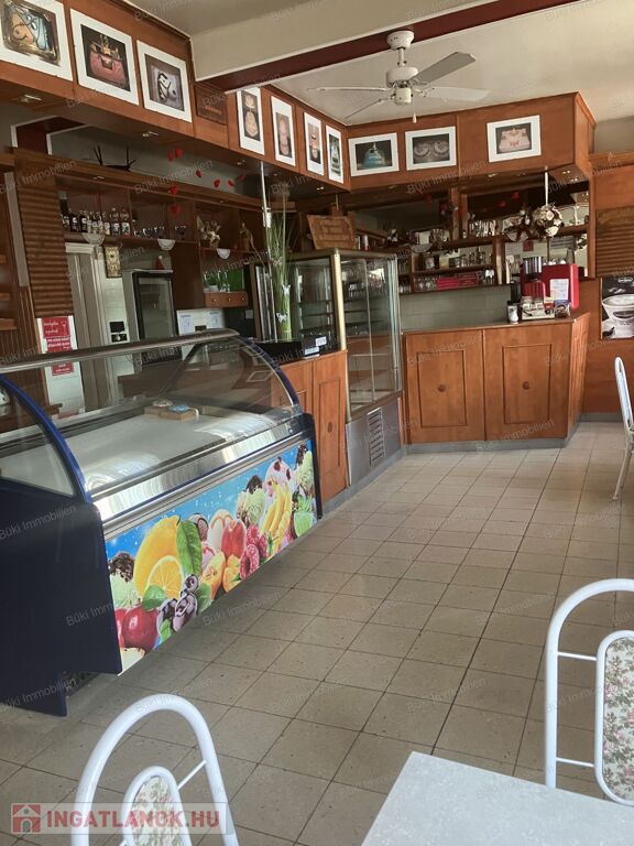 Az ingatlan minden olyan szükséges eszközt és felszerelést tartalmaz, amely lehetővé teszi a vállalkozás akár azonnali indítását. Az eladótér teljesen berendezve, asztalok, székek, valamint a termékek árusításához szükséges nehéz gépek is megtalálhatók. A vendéglátó térhez továbbá tartozik egy kültéri fedett terasz, szintén asztalokkal, székekkel, utcára nyíló fronttal. Az üzlet előtt térkövezett parkoló, valamint bicikli tároló biztosított. Az előállítási térben szintén minden olyan eszköz és felszerelés rendelkezésre áll, amely biztosítja a sütemények, fagylaltok, valamint további cukrászati termékek előállítását és tárolását (2 fagyasztó valamint egy kb. 3.5m2-es hűtőkamra).