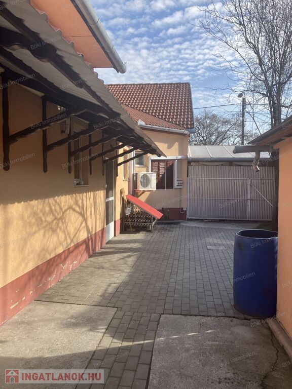 A cukrászdához tartozik egy 3 szobás, összkomfortos, felújítandó családi ház, amely az udvarról külön bejárattal közelíthető meg. Az udvaron található még egy kinti tároló és egy garázs is.