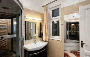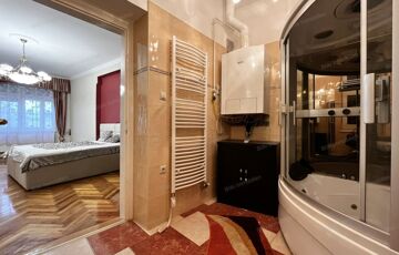 Kiadó Miskolcon, a Soltész Nagy Kálmán utcában egy igazán különleges, nagypolgári hangulatú, teljesen felújított, kifinomult és igényesen berendezett lakás, a liftes társasház harmadik emeletén. Már a konyhába lépve feltűnik a klasszikus elegancia és a minőségi kivitelezés: egyedi, fa frontos konyhabútor, beépített gépek, kényelmes étkezőrész és tágas munkafelületek fogadják a bérlőt. A nappali nagy belmagasságával, hatalmas ablakaival és stílusos bútorzatával valódi nagypolgári atmoszférát teremt, miközben modern és otthonos.   A 91 m²-es lakás két tágas szobából áll, déli fekvésű, így egész nap világos, barátságos tereket kínál. A fürdőszoba különlegessége a jacuzzis, többfunkciós zuhanykabin–kád kombináció, amely a kikapcsolódást és a praktikumot is biztosítja; a helyiség tágas, rendezett és mosógéppel felszerelt.   A műszaki állapot kiemelkedő: kondenzációs kazán biztosítja a fűtést és melegvizet, modern radiátorokkal, valamint öt darab Daikin klíma gondoskodik a hűtésről és fűtésről. A társasház felújított, tetőszigeteléssel és új álmennyezettel, továbbá a körfolyosón saját, elkerített teraszrész áll rendelkezésre.   A lakás elhelyezkedése kiváló – közvetlenül a rendőrség mellett található, így a környék kiemelten biztonságos. A buszmegálló a ház előtt van, a villamos két perc séta, a belváros öt perc alatt elérhető. A lakáshoz tartozik egy tágas saját pince is, ami jelentős extra tárolóhelyet biztosít.   Ez az otthon ideális választás igényes pároknak, akik nagyvonalú, elegáns és kényelmes lakást keresnek, ugyanakkor irodai vagy vállalkozási célra is tökéletesen alkalmas, reprezentatív környezetet biztosít. A lakás minimum egy évre bérelhető.
